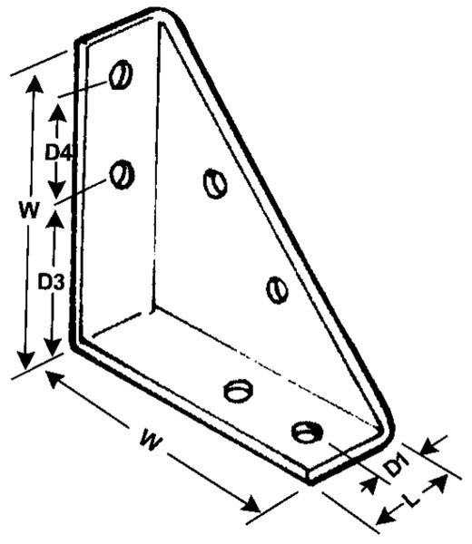 Angle Stiffeners improve the rigidity of any 90° wood connection. They develop the full allowable capability of bolts. Angle stiffeners also function as heavy-duty truss tie-downs. Because of the wide range of allowable loads for bolts when loaded parallel and perpendicular to grain, and at intermediate angles, load values are not listed. These can be obtained from National Design Specification for Wood Construction, published by American Forest and Paper Association.