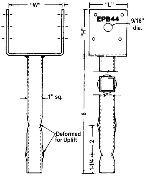 | EPB 44 EPB 44/Asset/a1142.jpg | Post Size N/A 4 x 4 | W N/A 3 9/16 | L N/A 2 1/2 | H N/A 3 1/16 | Square Tube N/A 1" x 14 ga. | Nails N/A (8) 16d |